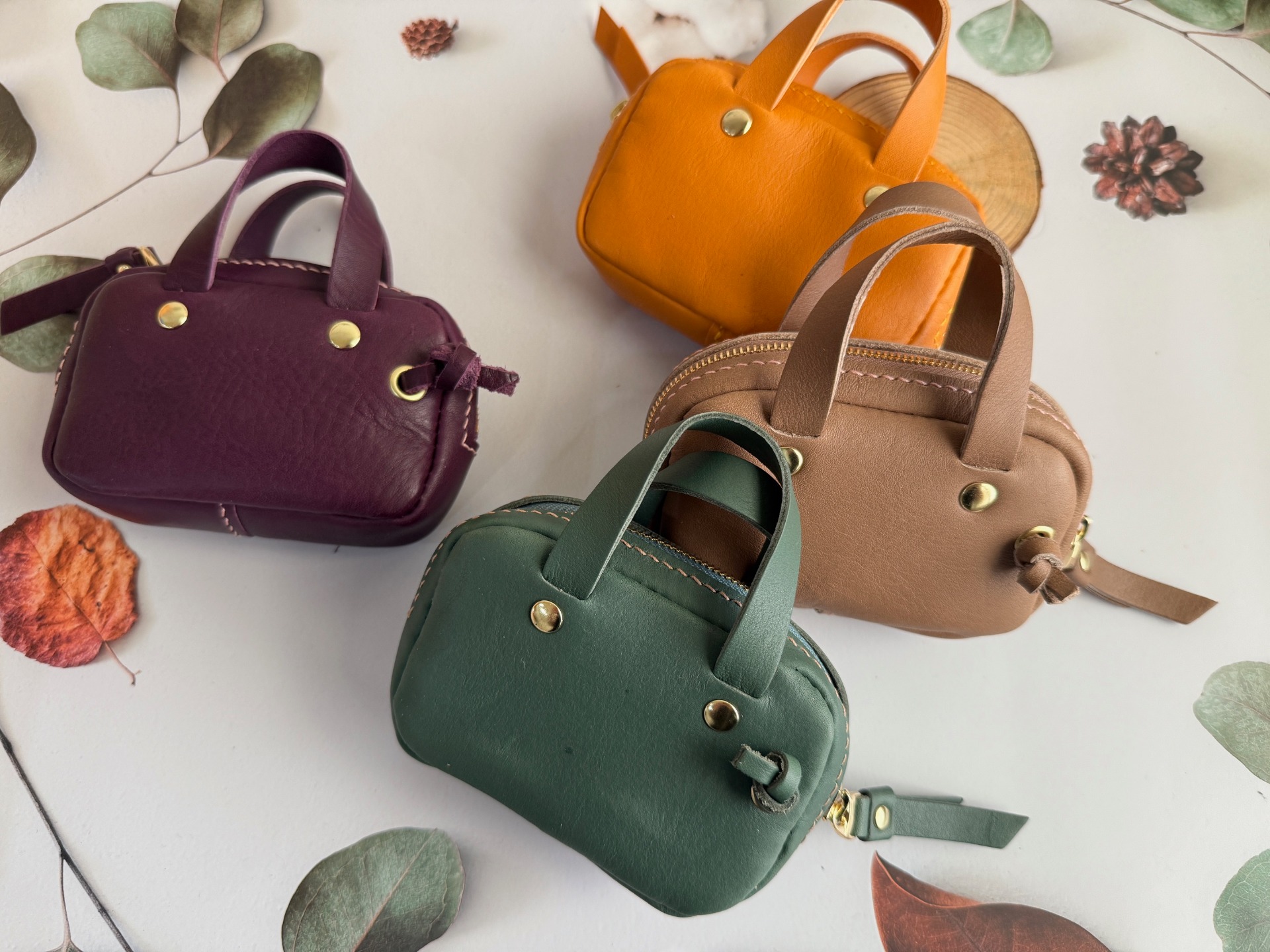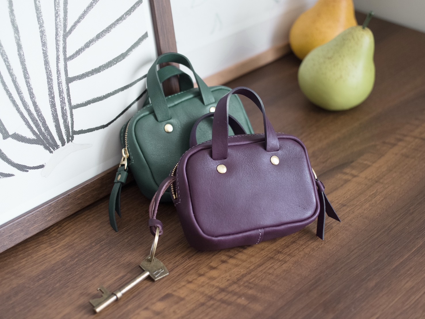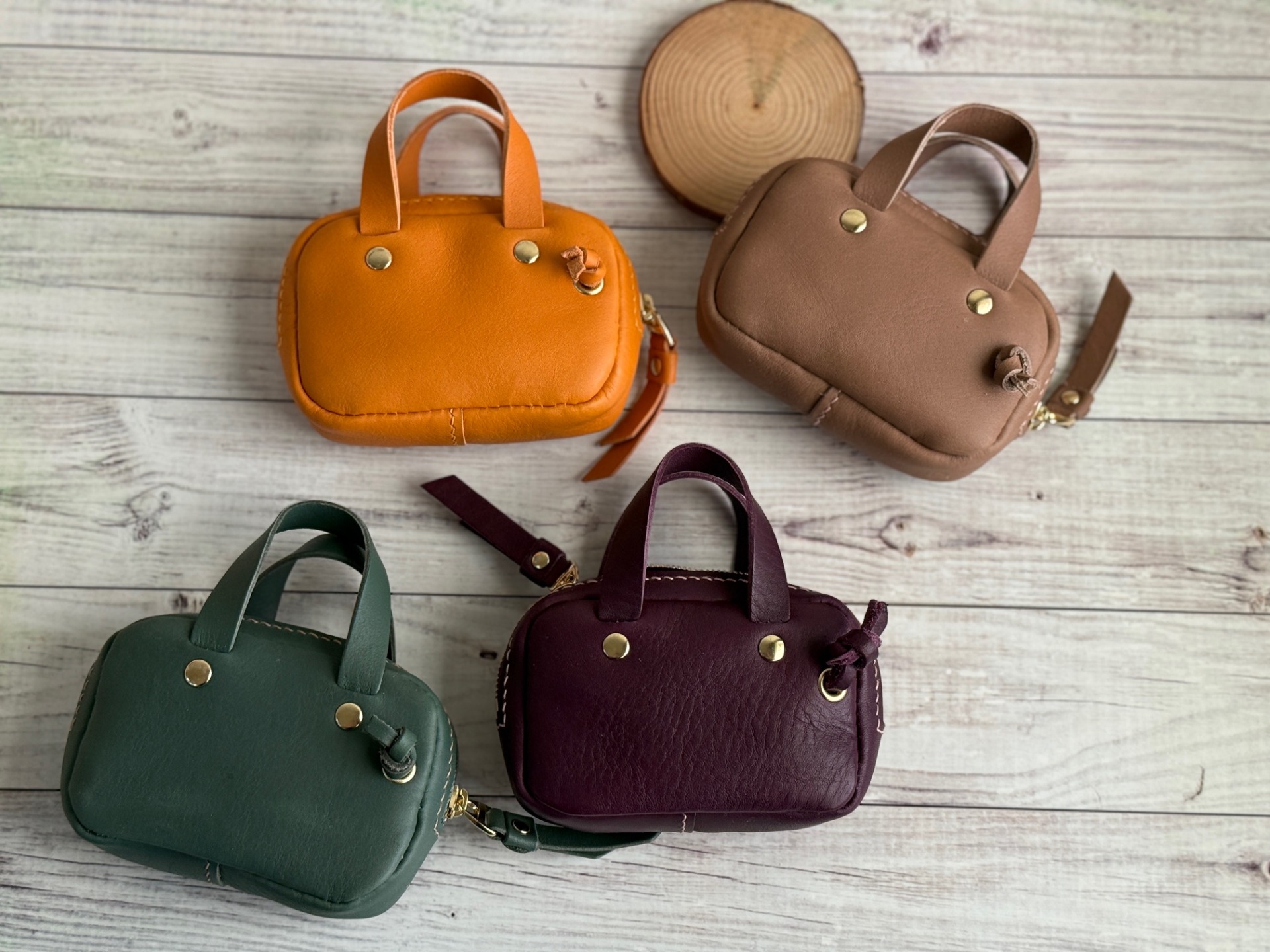 把街頭小方包縮小,加個提把更顯得可愛,鑰匙、零錢、卡片都可以放進去,隨取隨用。